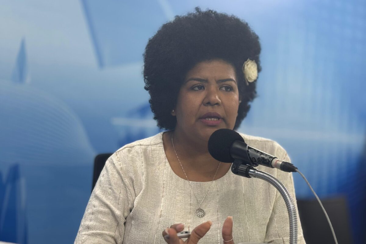 Debora mostra os animais do lugar