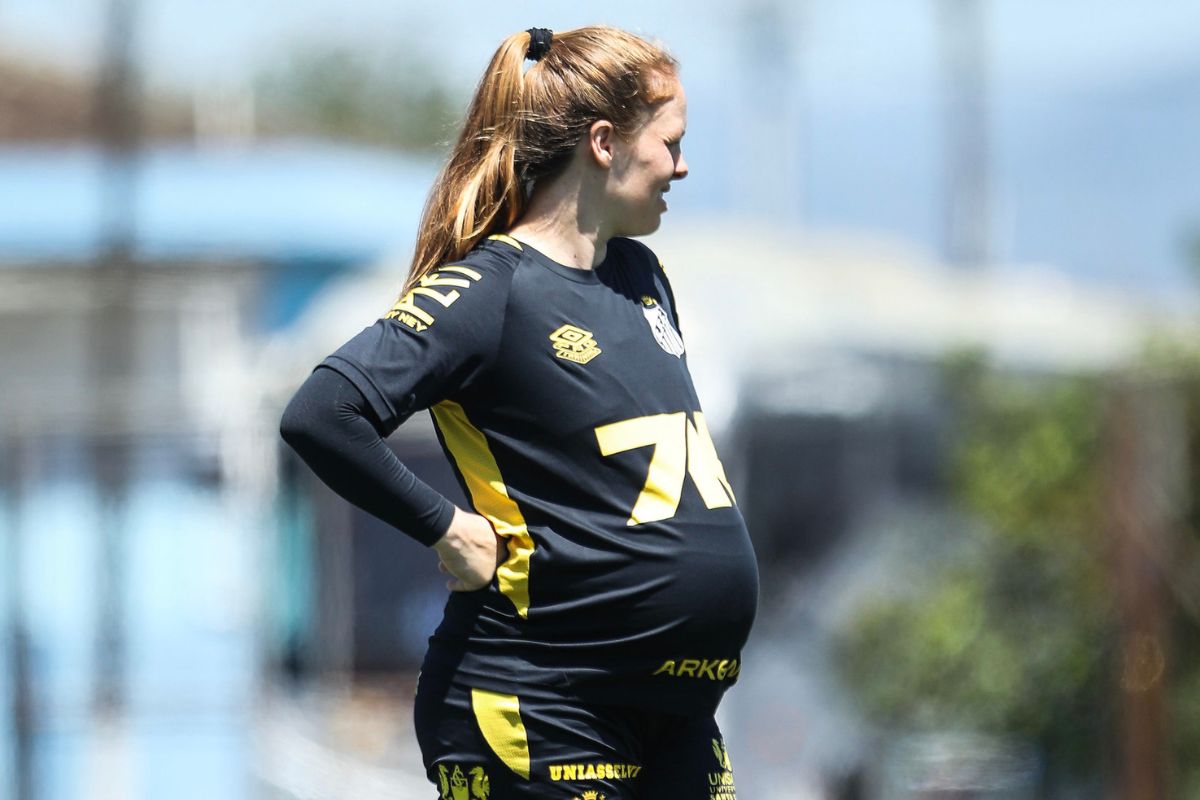 Grávida de oito meses, Ketlen Wiggers, do Santos, deixou os campos momentaneamente nesta quinta-feira (23/10)