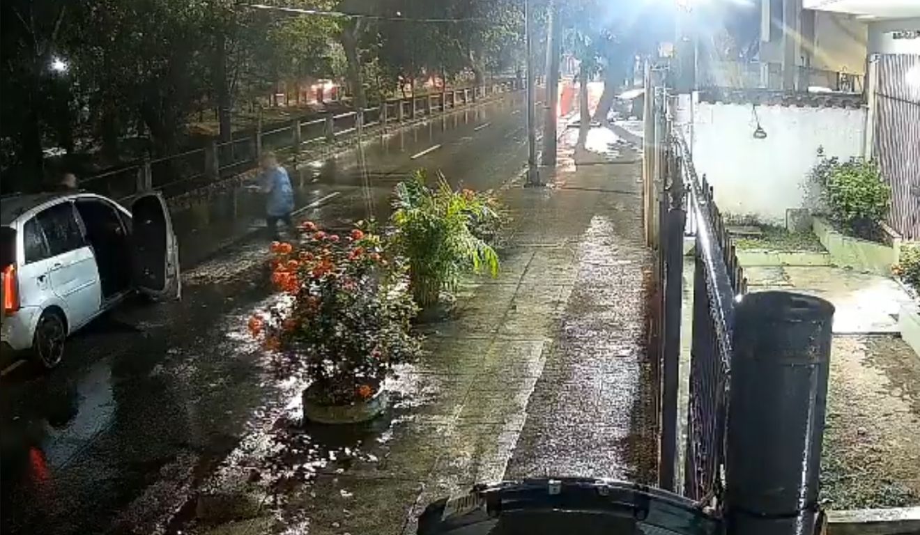 Foto: Reprodução/TV VitóriaA ação dos três criminosos foi flagrada por câmera de segurança. Uma mulher entra na igreja e leva a bike da vítima, um adolescente