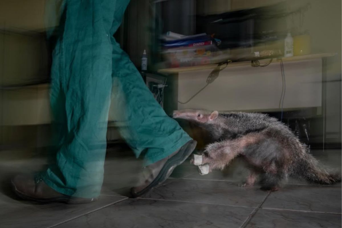 O fotógrafo Fernando Faciole ganhou o prêmio Fotógrafo de Vida Selvagem do Ano de 2025 com a imagem de uma tamanduá-bandeira órfão