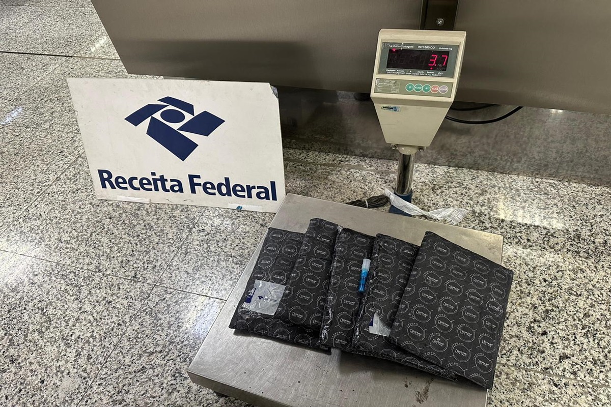 Passageiro de 32 anos embarcaria em voo com destino a Londres, com escala em Lisboa, Portugal. Drogas estavam na bagagem de mão dele
